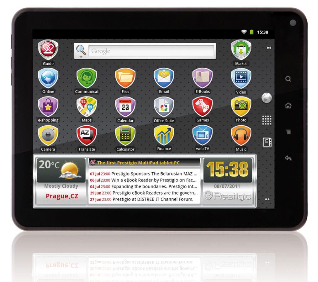 Пользователю будут доступны приложения для работы с социальными сетями (YouTube, Facebook, Twitter) и программное обеспечение OfficeSuitePro, которое поддерживает все форматы MicrosoftOffice 2003/2007 и 2010, ведь постоянный доступ к офисным инструментам является критичным для многих современных пользователей. Планшет является не только рабочим инструментом, но и развлекательным мультимедийным центром, поэтому производитель оснастил новинку набором самых популярных игр (Angry Birds, Raging Thunder, Solitaire, Classic Chess). Кроме того, встроенный в PMP5080B медиаплеер поддерживает все популярные текстовые, аудио- и видеоформаты. А интуитивный дизайн главного меню сделает использование нового планшета Prestigio MultiPad простым и удобным.